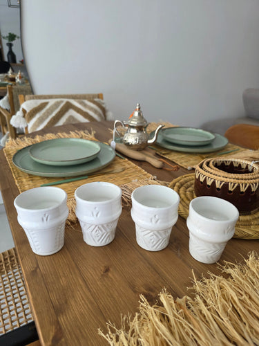🤍 Lot de 4 petits verres blancs sculptés – Artisanat marocain