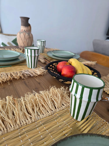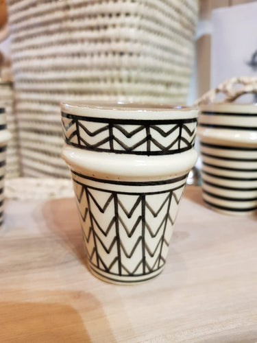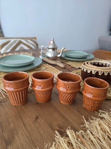 🧉 Lot de 4 petits verres – Terre cuite sculptée – Artisanat marocain