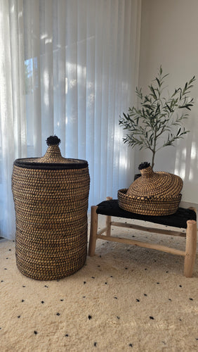 Panière Marrakech – artisanale noire & naturelle avec pompon