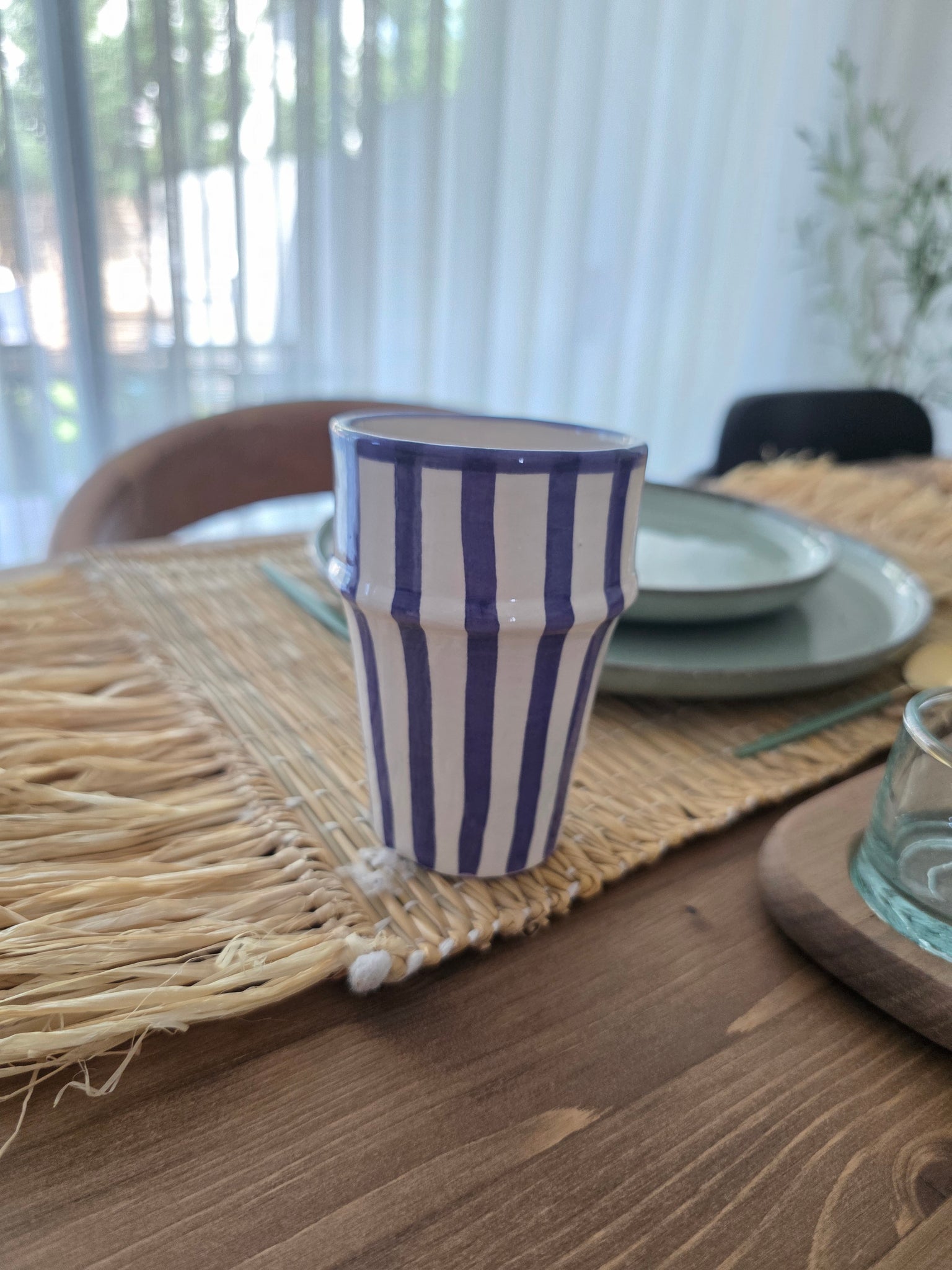 Laissez-vous séduire par l’originalité de ce verre rayé violet, fait main au Maroc 💜