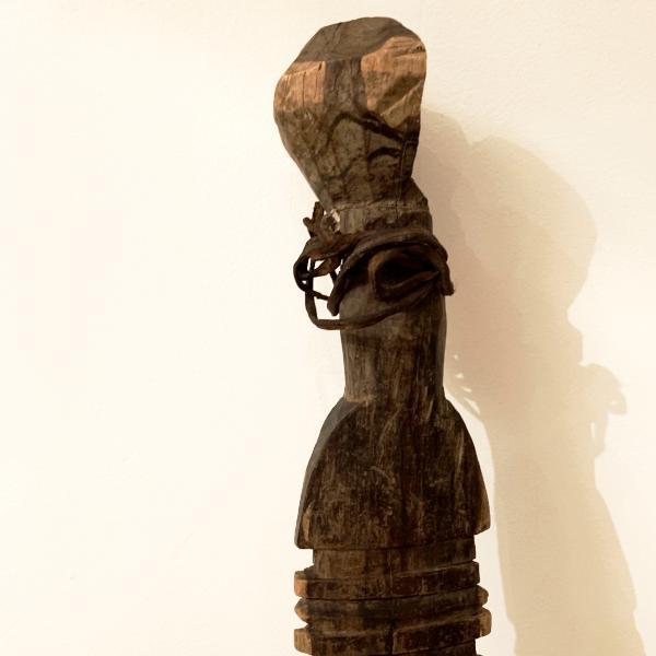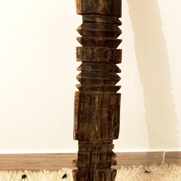 Ancien piquet en bois sculpté utilisé pour installer les tentes berbères dans le desert.